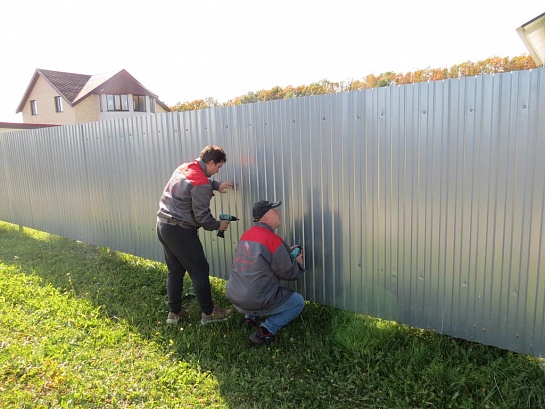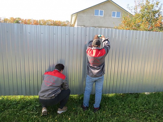 Забор из оцинкованного профнастила с забивными столбами 190 метров