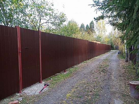 Нужно было сделать забор быстро и не очень дорого. Остановились с мужем на профлисте. Получилось красиво и цена понравилась