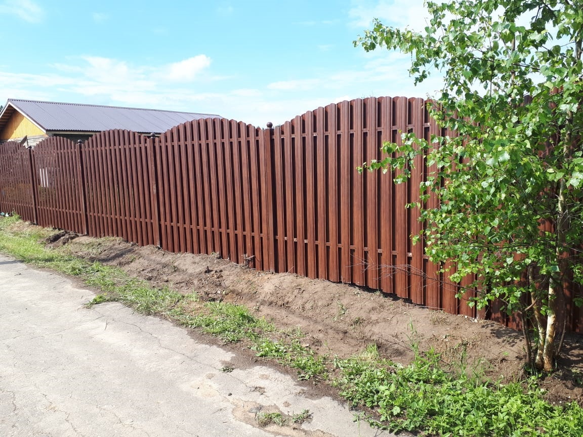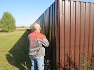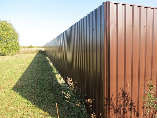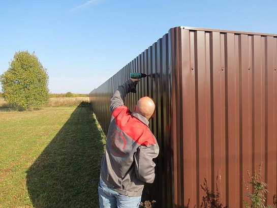 Забор из профнастила на столбах с утрамбовкой щебнем 168 метров