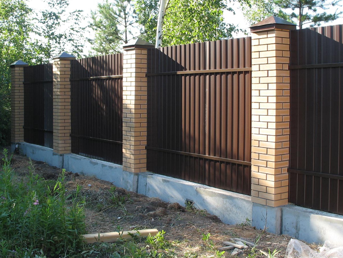 забор из профнастила с утрамбованным щебнем 100 метров